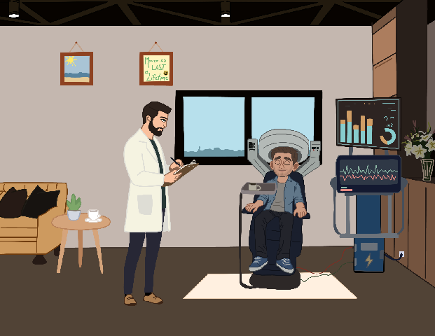 Max is someone troubled by some difficult experiences when he goes to use a machine that allows the user to erase memories of the past. after being briefed on how the machine is supposed to be used he goes off as he is given a chance to erase memories that have been bothering him for a while.